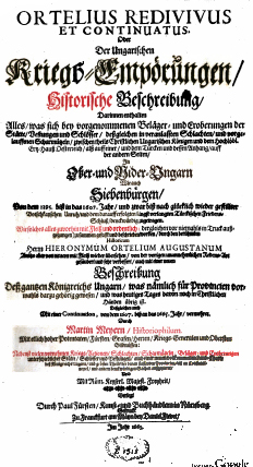 · Hieronymus Ortelius (Oertel), Martin Meyer, Ortelius Redivivus et continuatus Oder Der Ungari-